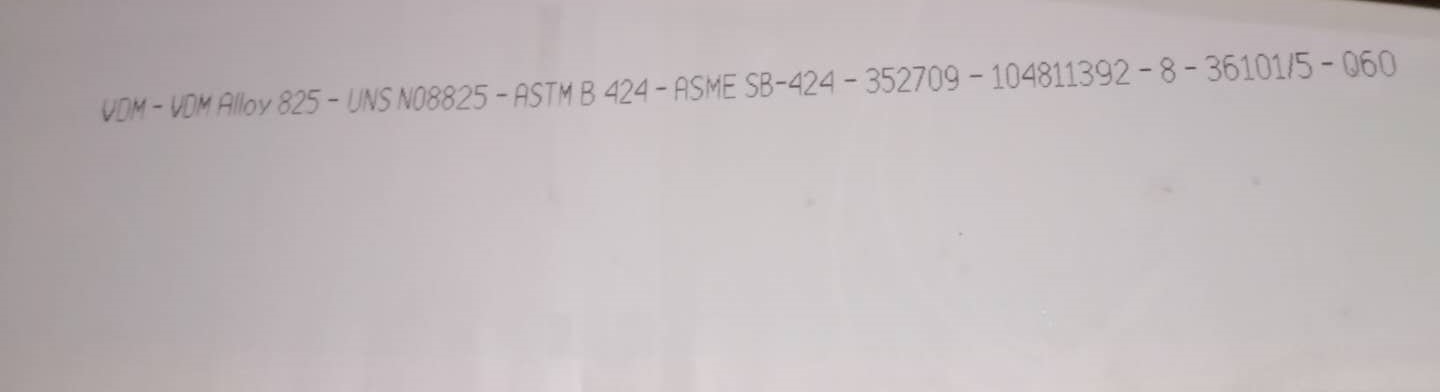 碳(C)≤0.025,錳(Mn)≤1.0,鎳(Ni)38.0~46.0,硅(Si)≤0.50,磷(P)≤0.02,硫(S)≤0.01,鉻(Cr)19.5~23.5,鐵(Fe) ≥ 22.0,鋁(Al) ≤0.2,鈦(Ti) 0.6~1.2,銅(Cu) 1.5~3.0 ,鉬(Mo)2.5~3.5